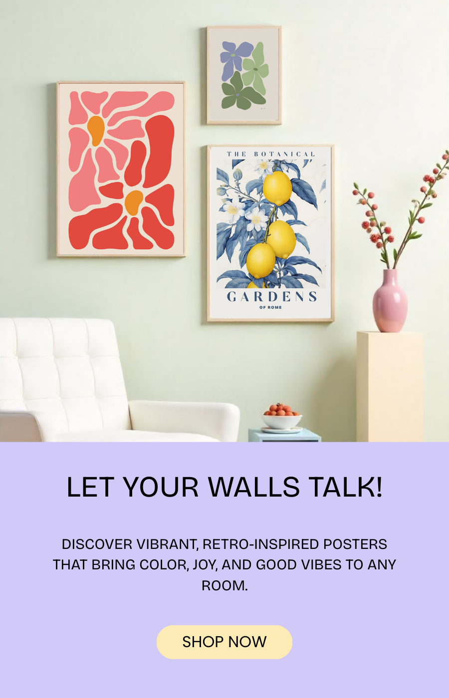 We offer retro, colorful and unique posters that add style and personality to any space. You'll find vintage, pop art, typographic, geometric posters and more.